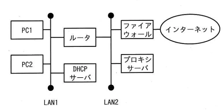 PC1をインターネットに接続するための設定を行いたい。PC1のネットワーク設定項目の一つである“デフォルトゲートウェイ”に設定するIPアドレスは,どの機器のものか。