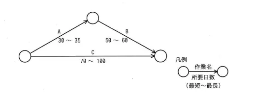 図の工程の最短所要日数及び最長所要日数は何日か。