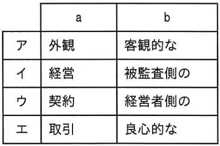システム監査人は, 監査対象となる組織と同一の指揮命令系統に属していないなど, [ a ]上の独立性が確保されている必要がある。また, システム監査人は[ b ]立場で公正な判断を行うという精神的な態度が求められる。