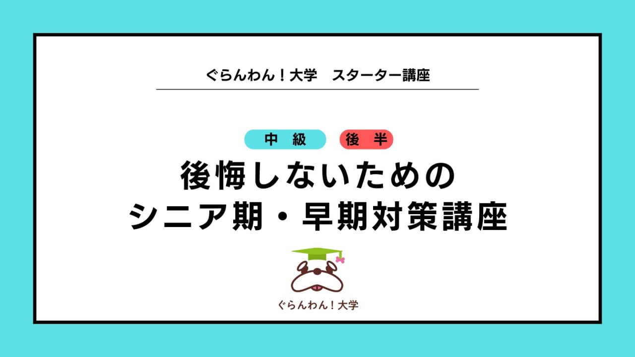 中級|後悔しないためのシニア期・早期対策講座【前半】
