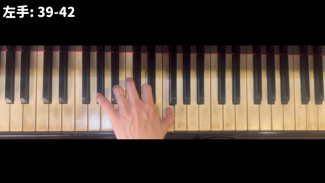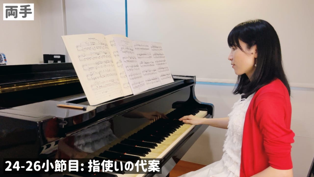 *私の指使いはあくまで一つの指使い案としてご参考になさってください。絶対ではありません。まずは楽譜に書いてある指使いを試してみて、とどかなかったり弾きにくい場合は、ご自分に1番しっくりくる指使いを探してみてください。
