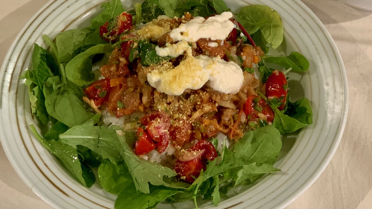 023 庄司いずみの ヴィーガンタコライスレッスン 【大豆ミートのヴィーガンタコライス/基本の豆腐マヨネーズ/丸ごとトマトの黄金スープ】
