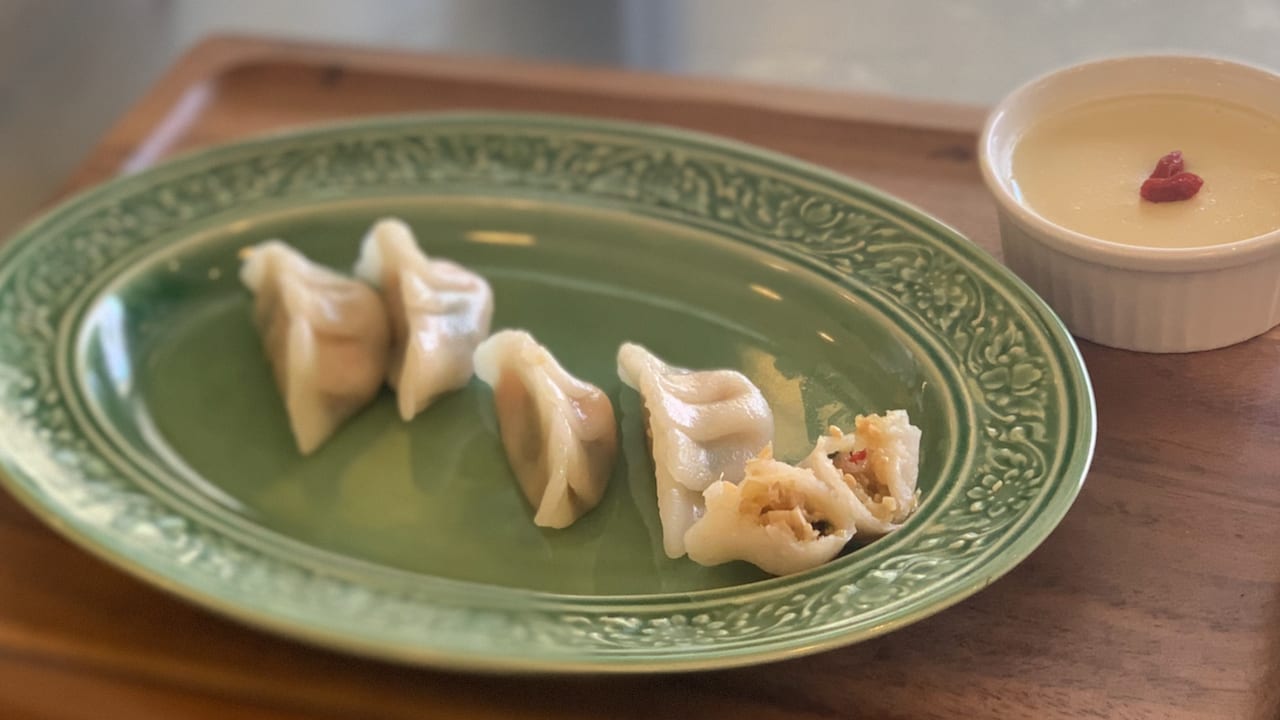 063 松崎恭子さんのおうちで簡単!グルテンフリーで皮から作るヴィーガン蒸し餃子(GF) 【特製蒸し餃子 /豆乳の杏仁豆腐風】