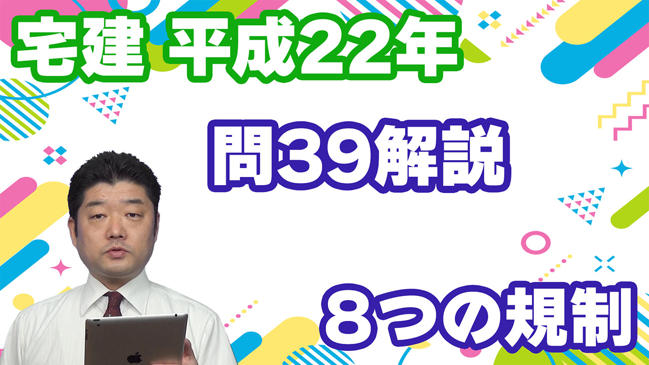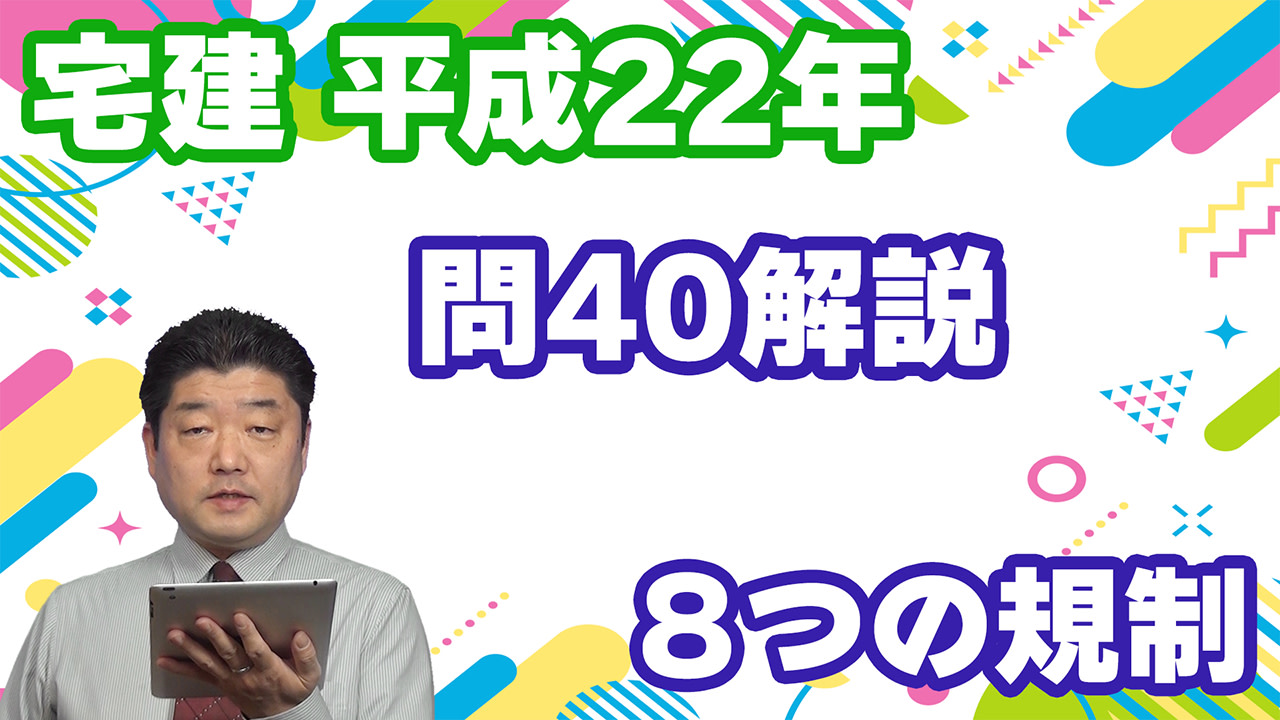 8つの規制に関する問題。「契約不適合担保責任の期間制限定」、「損害賠償額の予定」、「手付解除」、「他人物売買」について問われています。