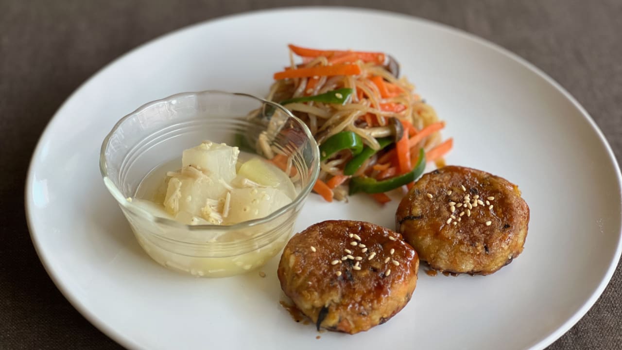 196 にしまきごはんのヴィーガン定食レッスン/ひよこ豆のベジつくね 【ひよこ豆のベジつくね/大根塩煮/白滝プルプル炒め】