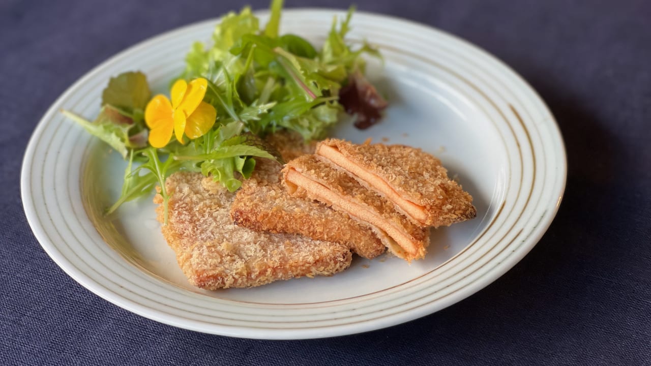 ヴィーガンレシピの肉風料理は大豆ミートを使うことが多いですが、このハムカツは高野豆腐で!