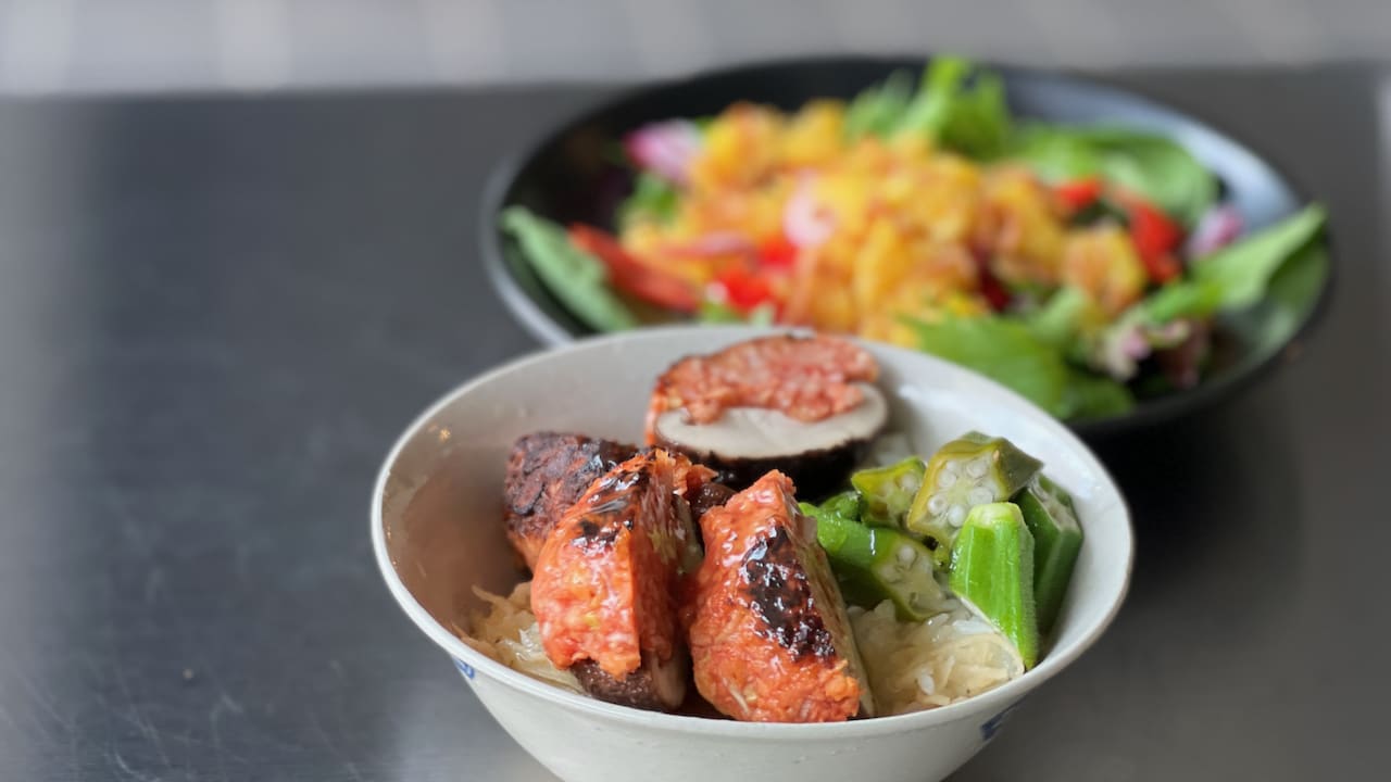 この回では椎茸の肉詰め風を和風の丼風に仕上げます。