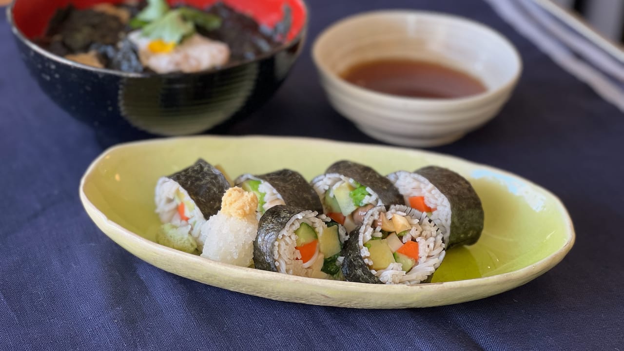 精進料理にも積極的に取り組む五味さんの今回のレッスンでは、旬の野菜をつかった蒸し寿司が登場。