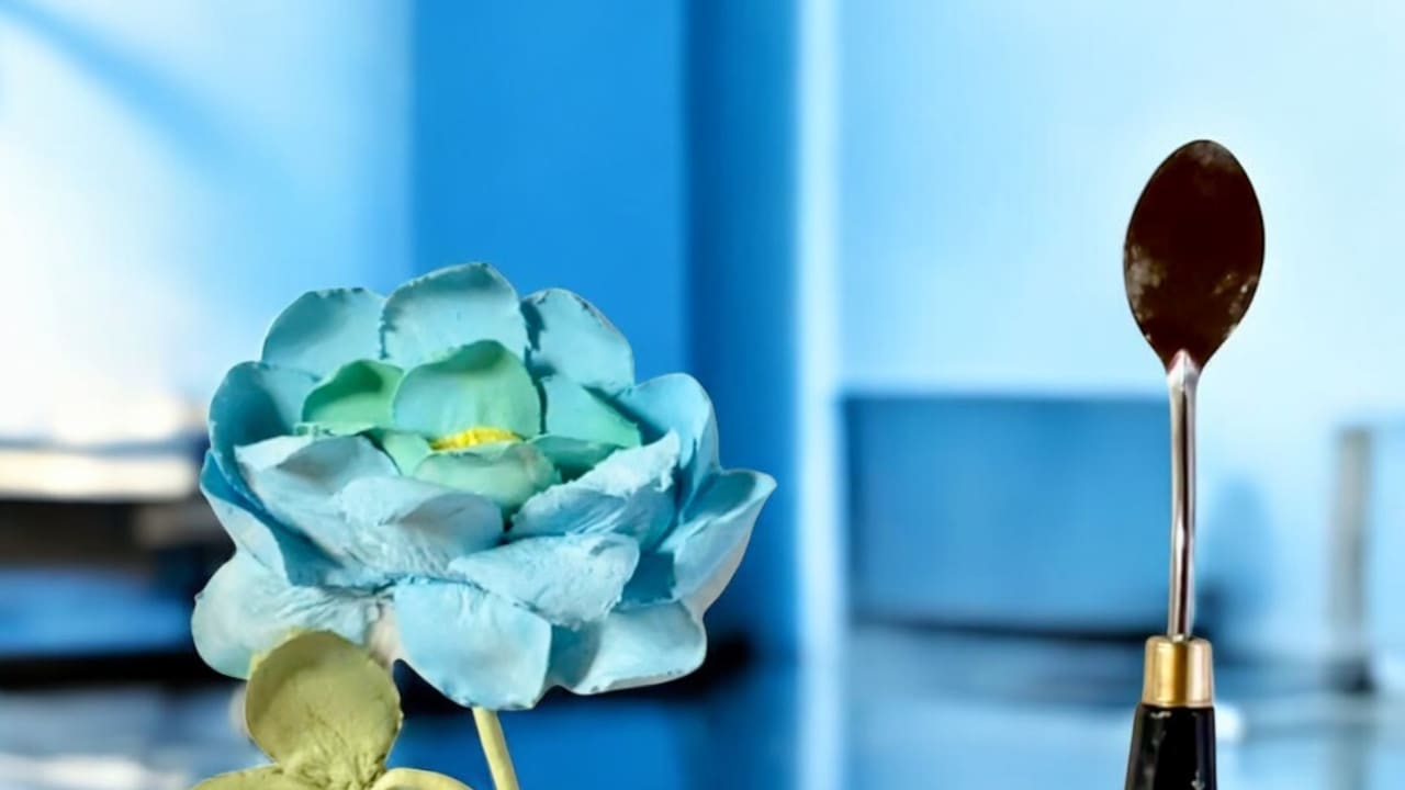 油絵やテクスチャーアートで使われるパレットナイフですが、こちらの花は、丸い形のパレットナイフを使用します。