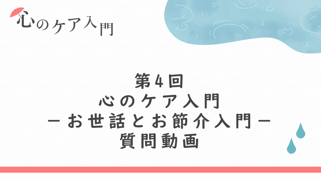本動画では、第4回「お世話とお節介入門―硬い社会の柔らかい関節」に寄せられたご質問にお答えしていきます。