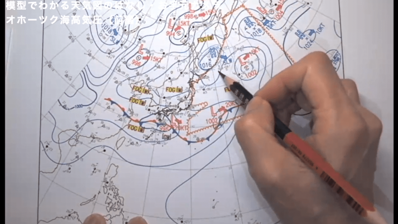 4/18にアップした動画「模型でわかる天気図のはなし(12)」のテーマに沿った、お手元カメラによる専門的な解説です