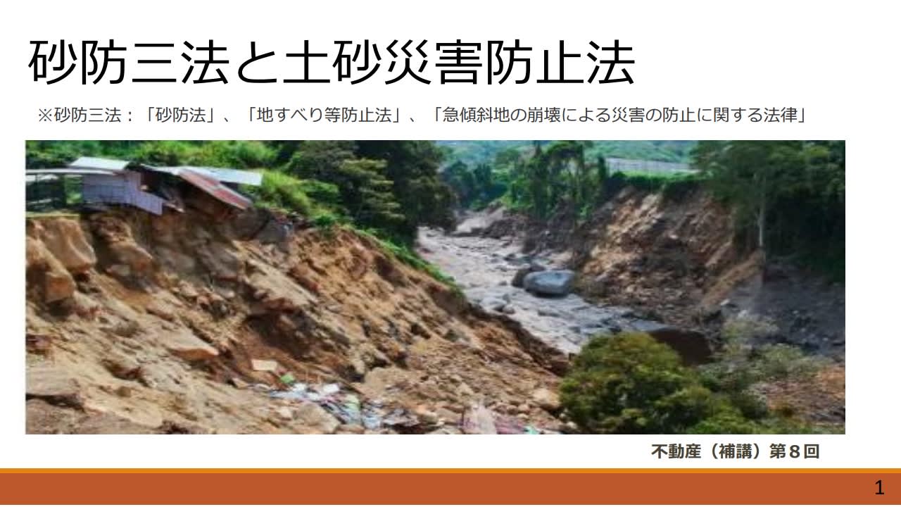 不動産の災害に関連する法律です、これらの法律は密接に関連しており、独特の接点をもっていますので、出題頻度は低くても内容はとても興味深いものとなっています。試験までに余裕のある段階でぜひ一度学習してみるのもおもしろいと考えます。
