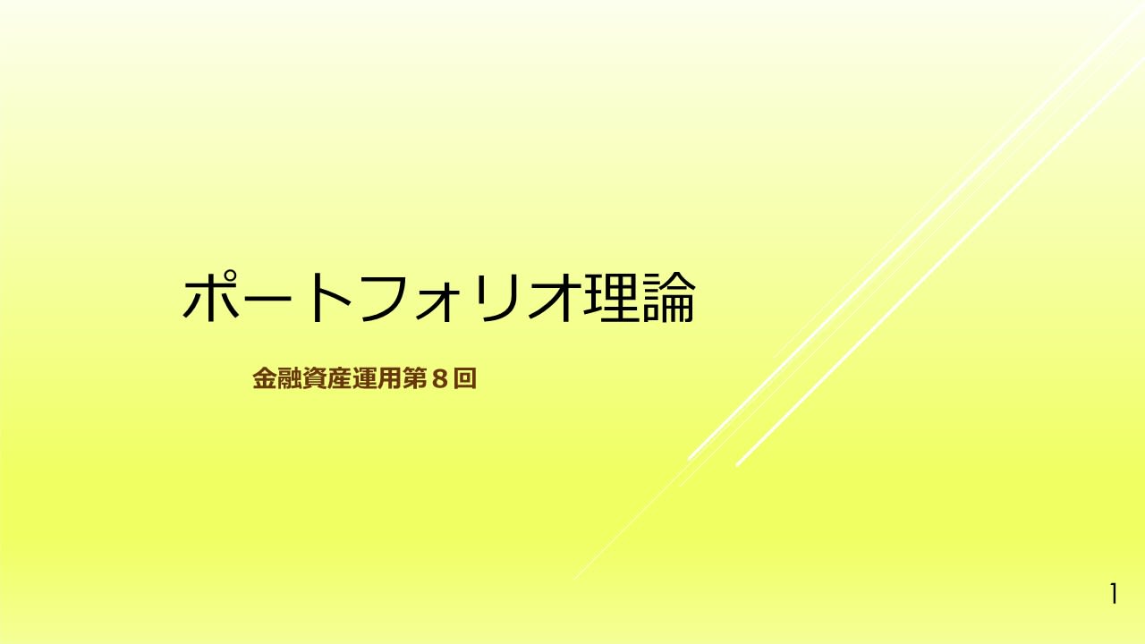 投資機会の集合と分散効果・トービンの分離定理・資本資産評価モデル(CAPM)・市場リスクと非市場リスク・パフォーマンス評価・効率的市場仮説及び行動ファイナンスについて学習します。