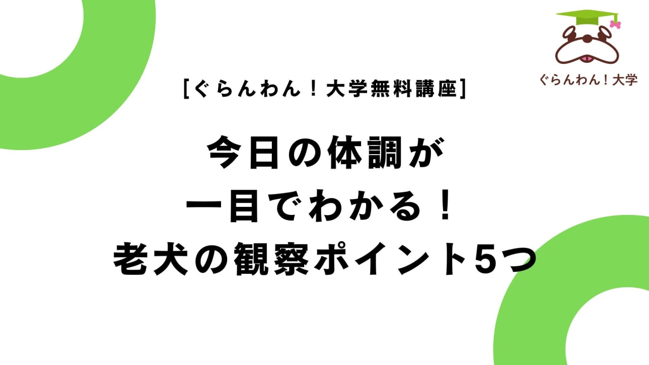 年齢を重ねた愛犬の体調は、ちょっとした変化から見極めることが大切です。この講座では、朝の5分でサッとチェックできる“今日の調子”を把握するためのポイントを5つ紹介します。
