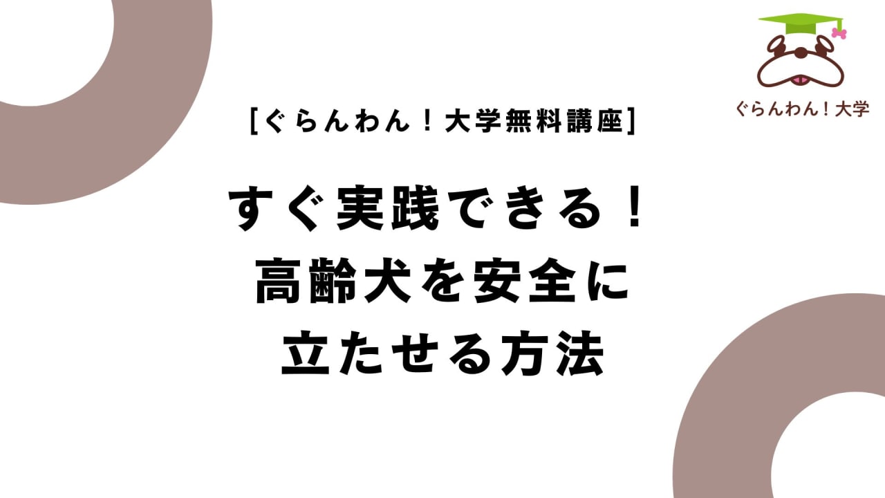 「ぐらんわん!大学」は、愛犬の健康・ケア・介護を専門家から学べるスクールです。学ぶことで初めて気づく愛犬の体調のサインや日々の変化に対応でき、健康寿命を延ばし、将来の介護予防につなげられます。