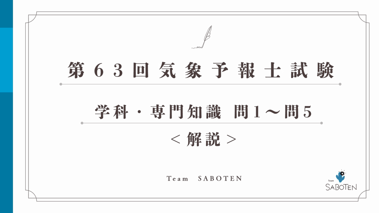 第63回気象予報士試験の【学科専門】問1~問5までの5問を解説しています。