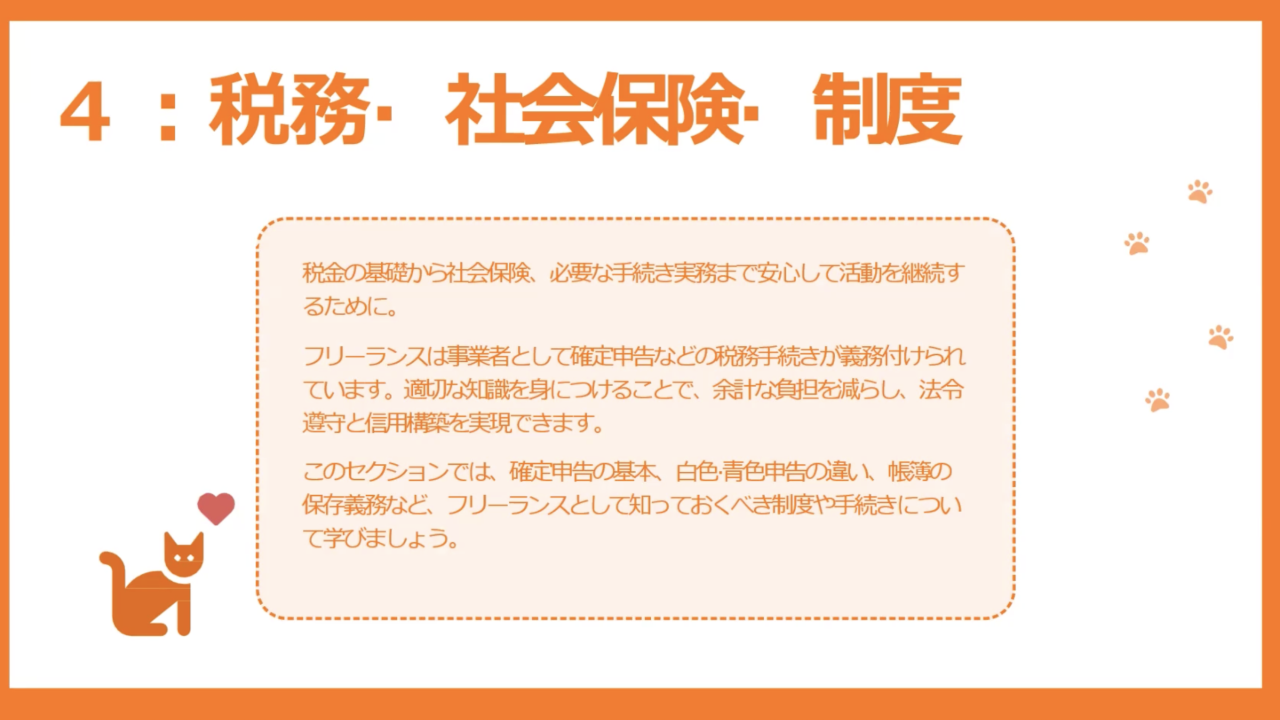 お金に関する基礎知識は、フリーランスとして活動していくうえで欠かせない大切な土台ですので、今回の講座がその一歩としてお役に立てたこと、とても嬉しいです!