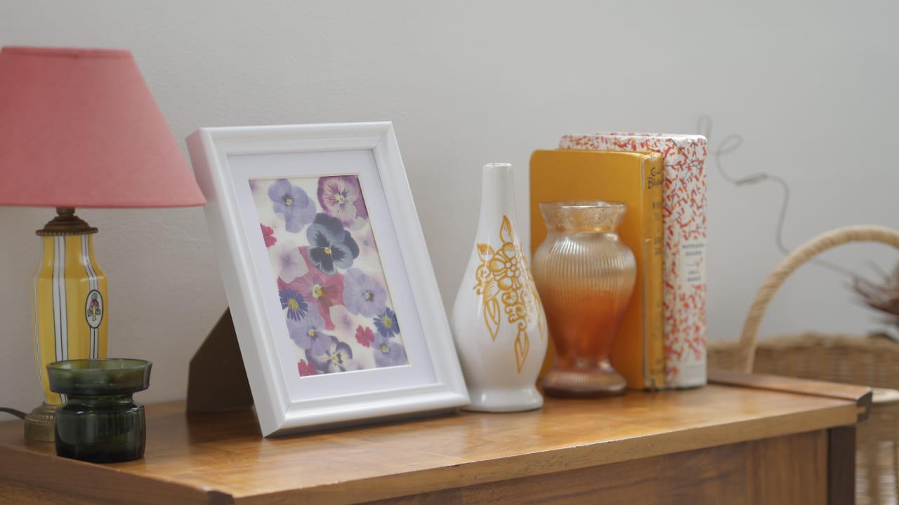 押し花は、額装して完全に額の中に閉じ込める(酸素や湿気が入らないようにする)ことで、鮮やかな色や形がより長持ちするようになります。初心者のかたでも失敗なく密閉できる密閉方法を身につけ、初めての本格的な額絵を作りましょう。