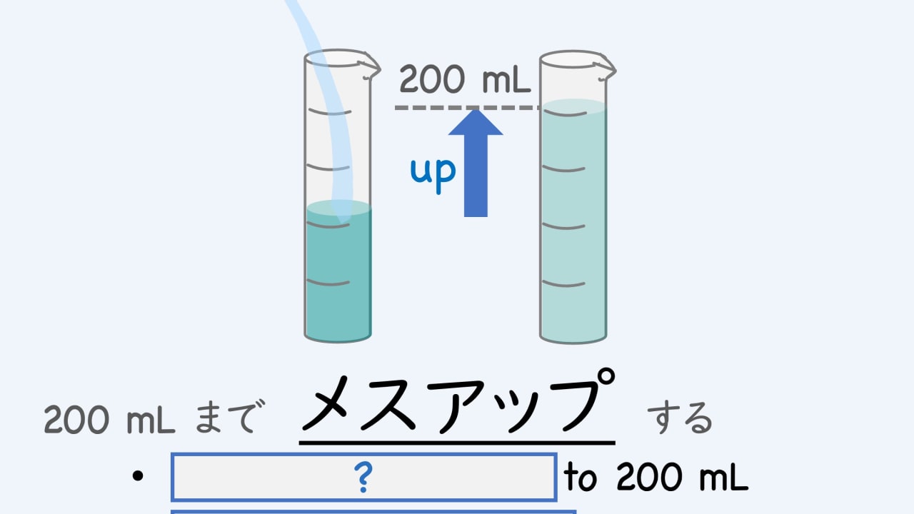 溶液を希釈・調製する時によく使われる「メスアップ」。