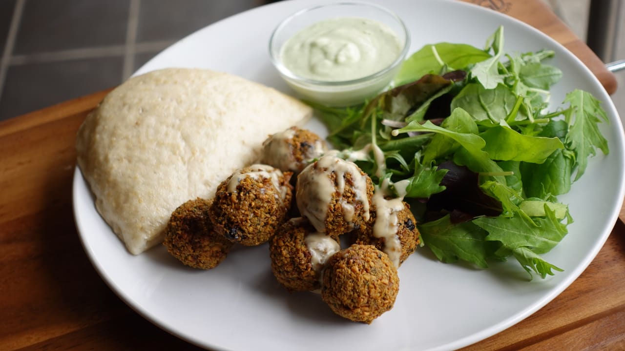 135 まるごとVeganダイニング浅草 (旧:THE FARM CAFE)の五葷フリーの特製ファラフェル(オリエンタルベジタリアン) 【五葷フリーのファラフェル/ソース2種】