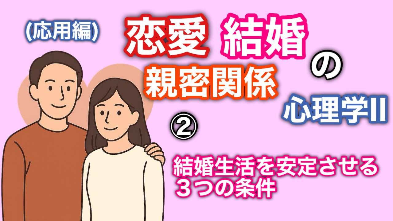 『恋愛・結婚・親密関係の心理学Ⅱ(応用編)』②結婚生活を安定させる3つの条件