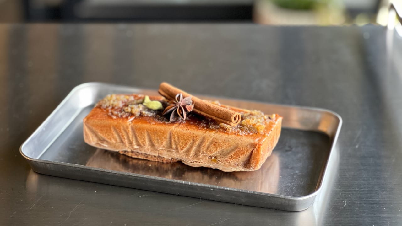 「スパイス入りの米粉や小豆、大豆などを発酵させてから焼き上げます。豆の風味によく合うので、グラズール(蜜の衣)には山椒と生姜を効かせました」(かがみさん)