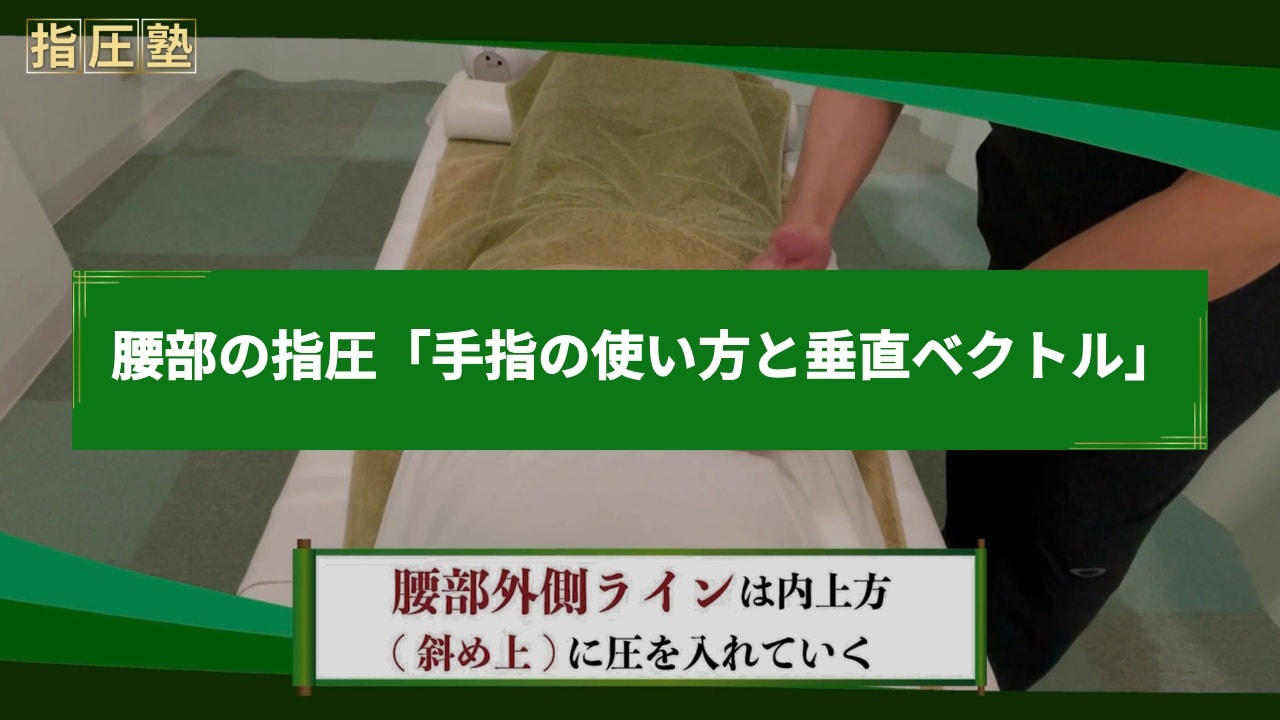 腰部施術における手指の正確な使い方と垂直圧の技術を学びます。