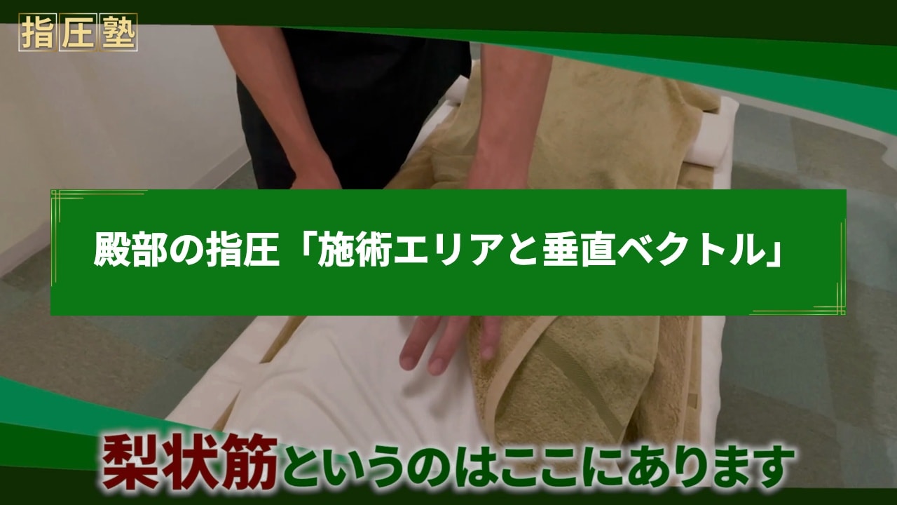 殿部の施術エリアに最適な垂直圧の方向を習得します。