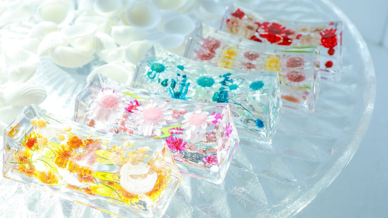 屈折率が水晶に近い高級オイルを使用して、透明感抜群で、お花の浮遊感も楽しめる箸置きを作ってみませんか?