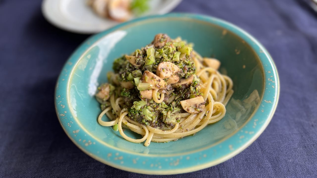 ・マッシュルームデュクセルとブロッコリーのリングイネ