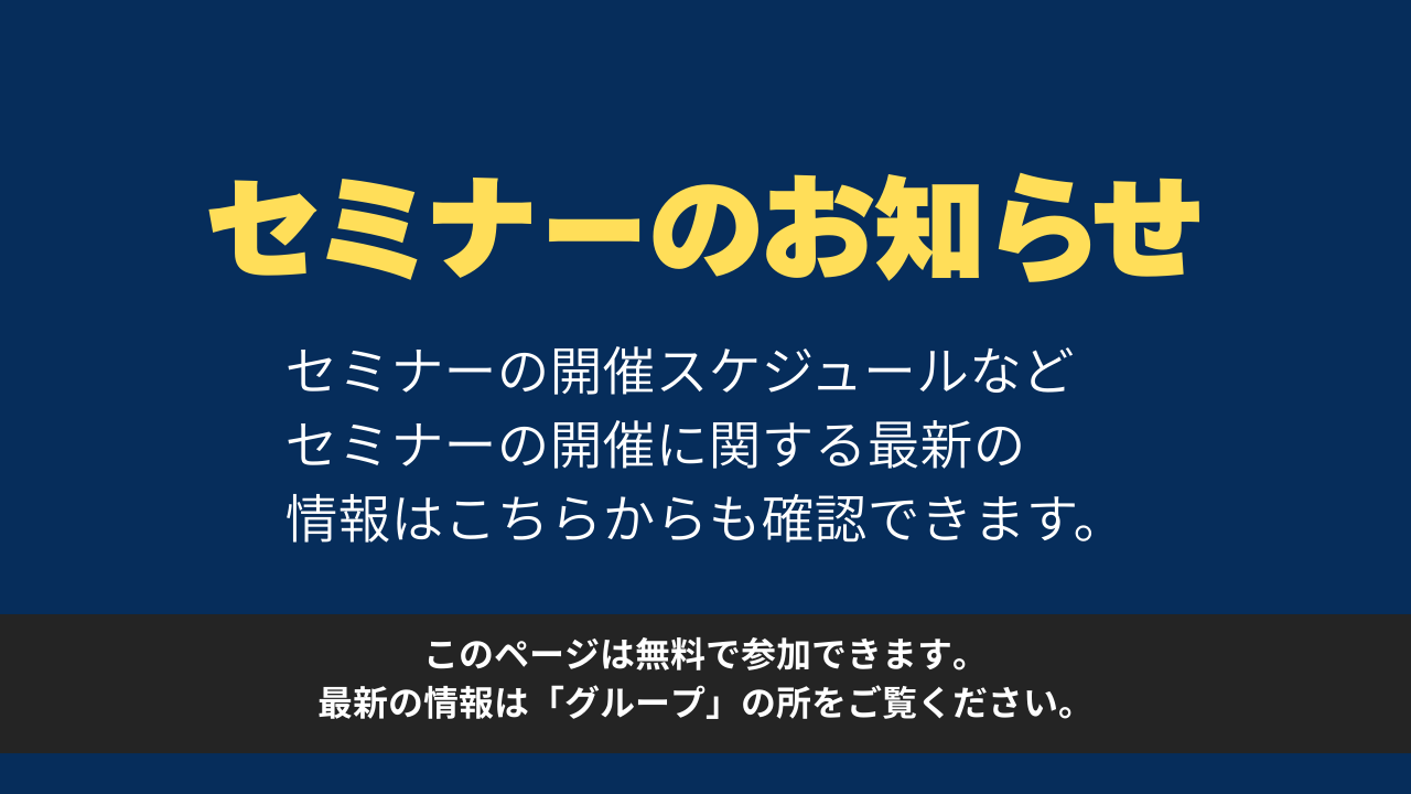 セミナーの開催スケジュールや動画講座の再販時期など、セミナーに関する最新の情報はこちらからもご確認いただけます。