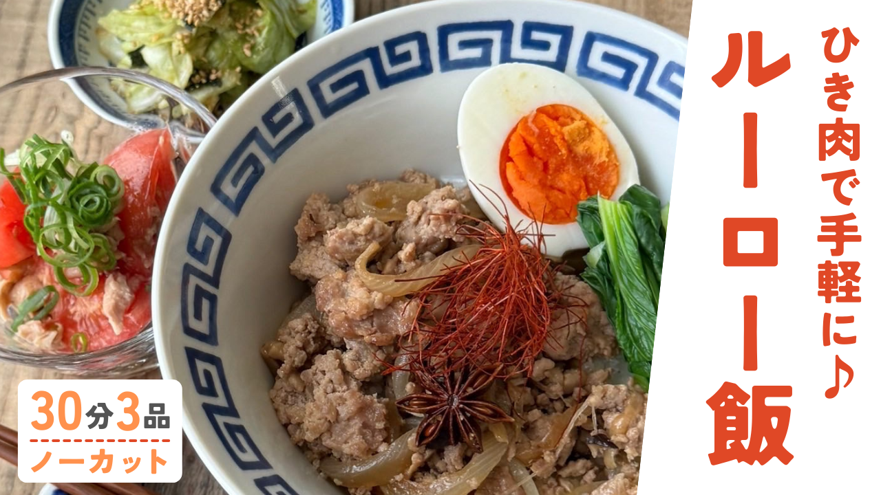甘辛ひき肉ルーロー飯/ツナポントマト /キャベツナムル