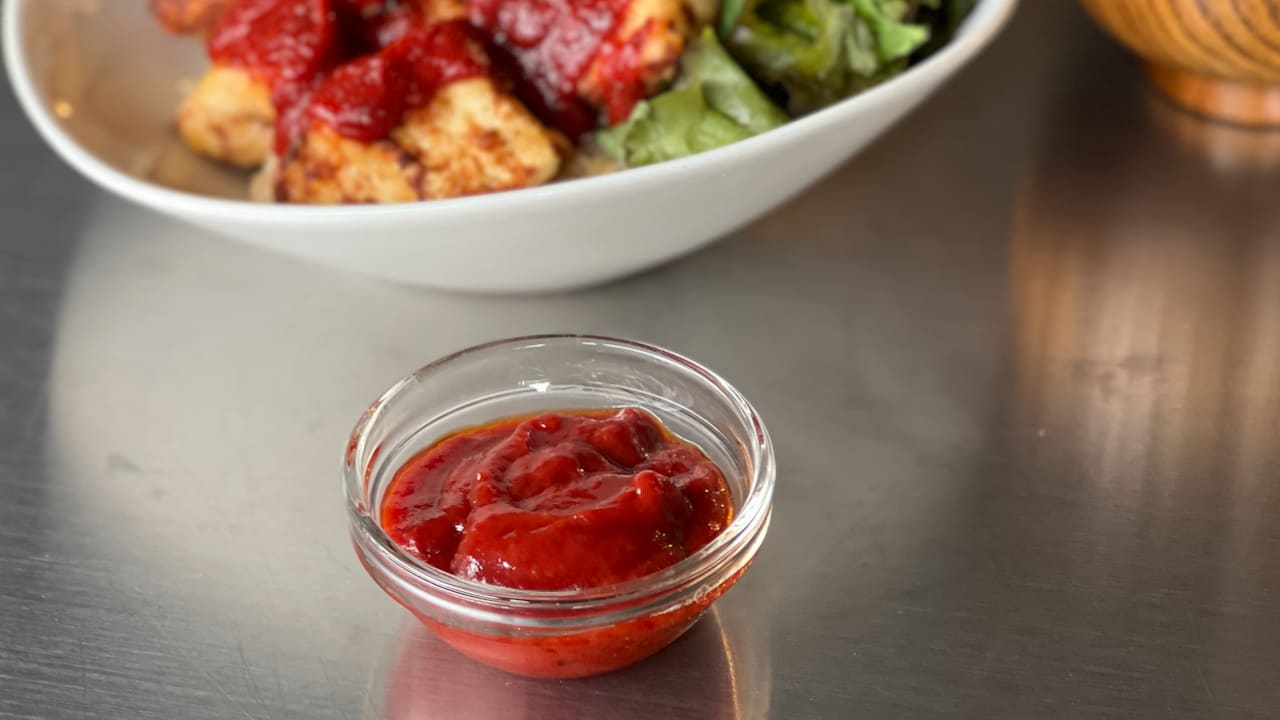 このレッスンでは、パンチ十分の塩抜きヤンニョムソースを作り、揚げ豆腐とあわせて丼に仕立てます。