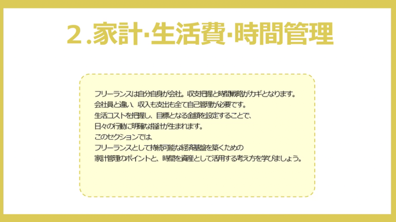 このセクションでは、フリーランスが事業を安定して継続するための計画立案と収支管の実な方法について学んでいきましょう