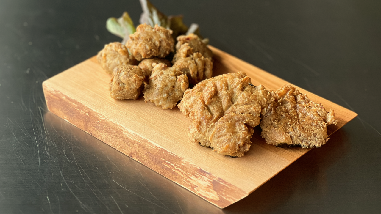 ある素材のうまみをギューっと抽出し、肉がわりの素材にふくませます。