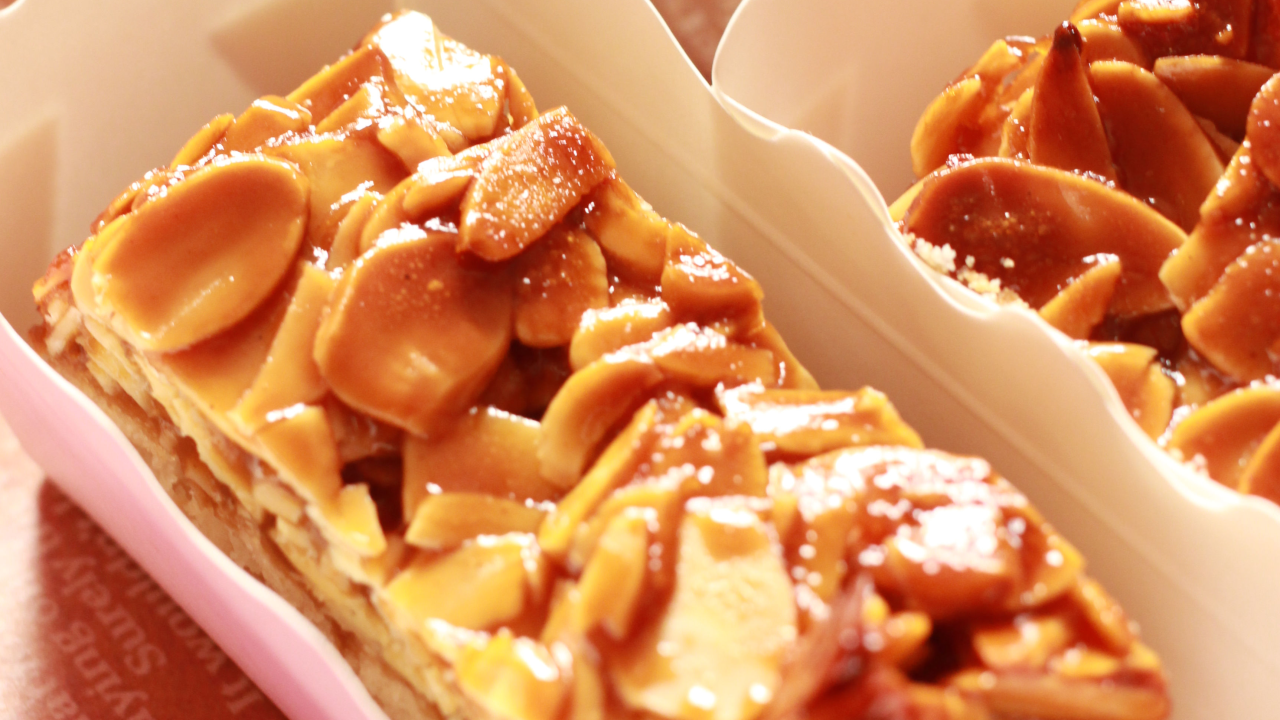 さっくりとしたクッキーの上にキャラメリゼしたアーモンドが香ばしくて美味しいお菓子。
