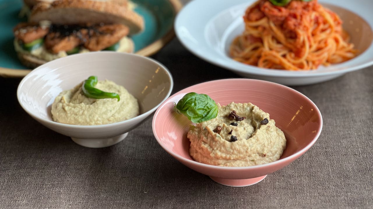 205 まるごとVeganダイニング浅草の 特製フムスとアレンジレシピ 【フムス/青唐辛子のフムス/トマトバジル風味のフムス/フムスソースのパスタ/ヴィーガンサンド】