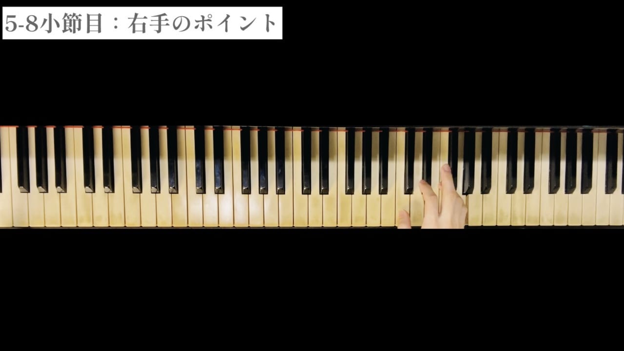 ・5-8小節目:右手のポイント(アクセントがつかない方が良い音、強弱、3連符の弾き方)