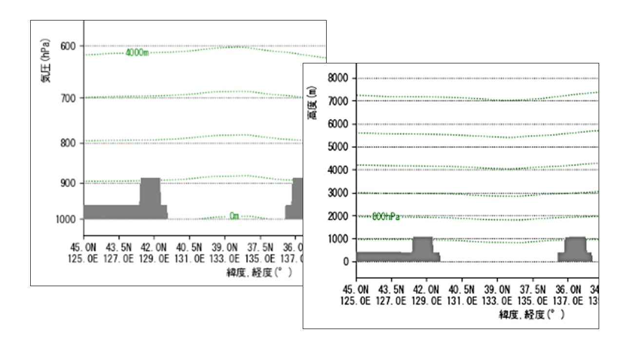 ・鉛直軸は気圧と高度の両方の例が含まれています