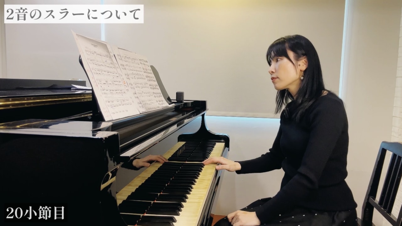 8小節目のパッセージなどで、なぜ2音ごとに切って弾く解釈があるか、その解説をしております。