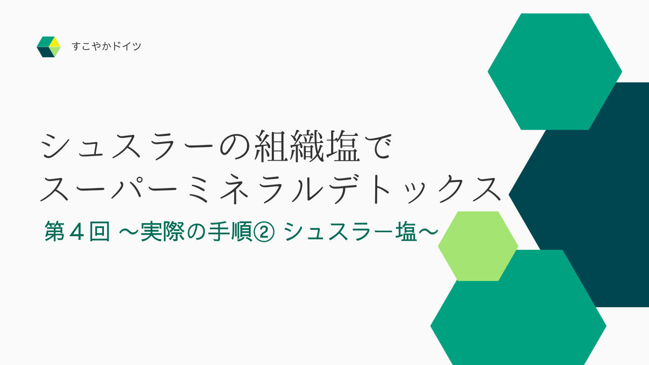 第4回では、実際にどのシュスラー塩を用いるのか、どの順番で摂取するのかについて、ご紹介して参ります。