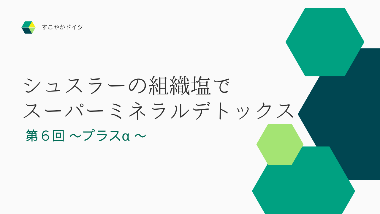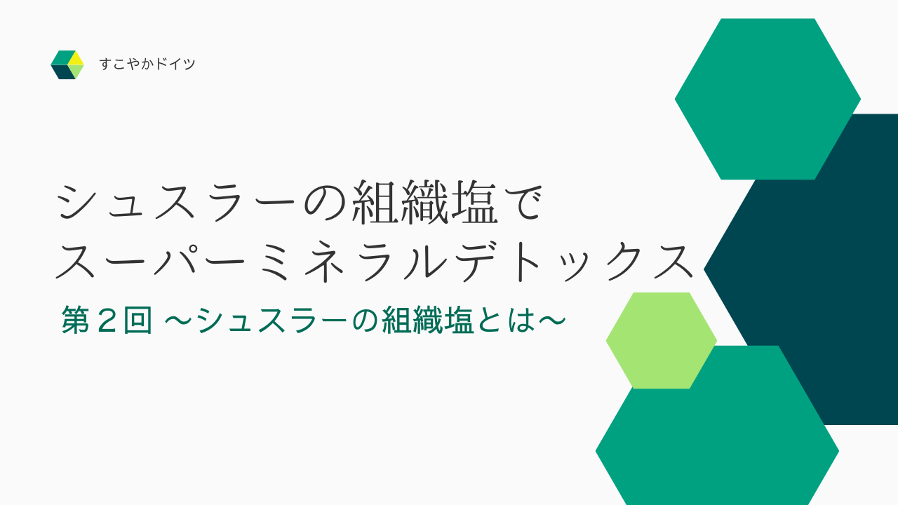 こちらのセミナーでは、シュスラーの組織塩療法として知られている組織塩と、ミネラルを用いた、自宅でできるデトックスの方法について、デトックスの基礎知識と共にご紹介いたします。