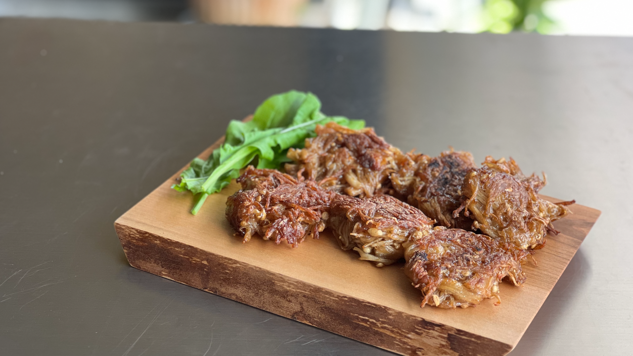 フライドオニオンのザクザク食感が決め手なので、多めがおすすめ。盛り付けてから黒胡椒を振ってもいいですね。