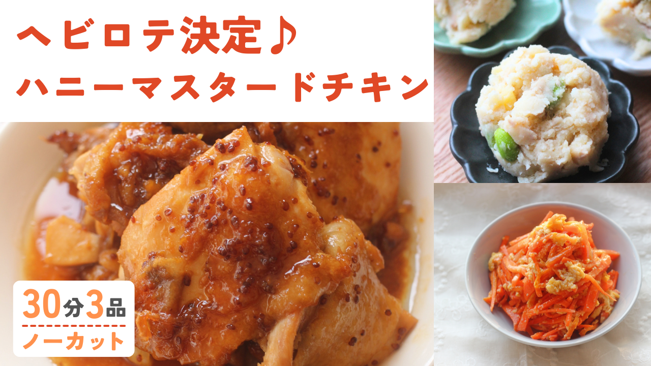 ハニーマスタードチキン /人参と卵の洋風しりしり /ツナポテサラダ