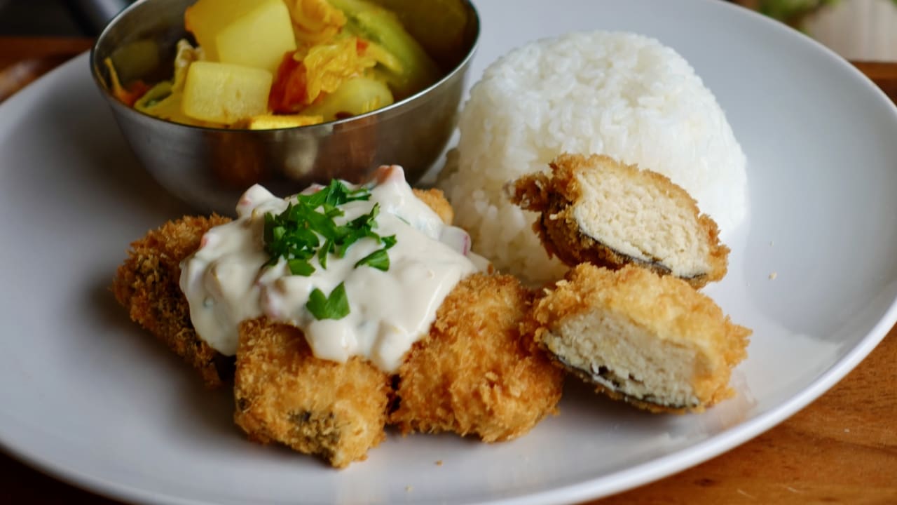 104 村田由恵さんの 食べるヨガレッスン/フィッシュフライ風献立(Oriental Vegan) 【フィッシュフライ風/特製タルタルソース/季節のサブジ】