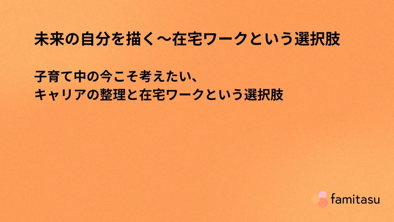 子育て中の“今”だからこそ見直したい、キャリアの整理と在宅ワークという選択肢