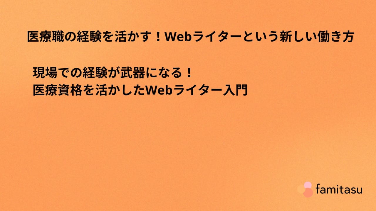 第二部 「現場での経験が武器になる!医療資格を活かしたWebライター入門」