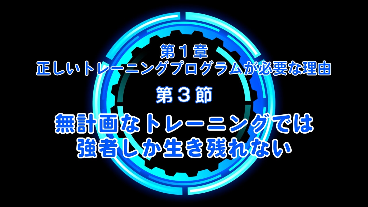 このコンテンツのサンプル動画として「第1章 第3節 無計画なトレーニングでは強者しか生き残れない」をご覧いただけます。ぜひチェックしてみてください。