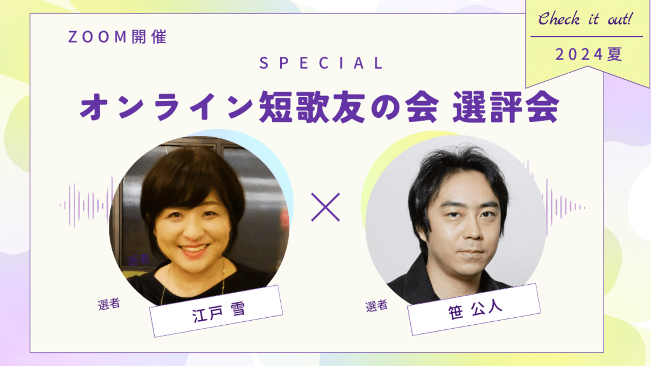 短歌友の会オンライン提出コース選者は、笹公人さん、江戸雪さんです。