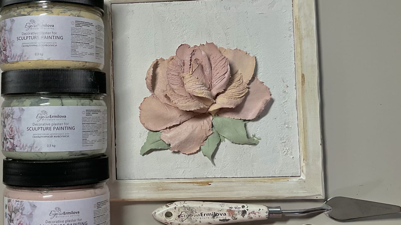 石膏とパレットナイフ2本を使って3Dフラワーを制作します